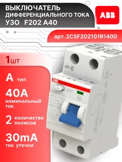 Выключатель диф тока УЗО 2P (2П) 40А 30 мА А F202 1шт