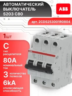 Автоматический выключатель 3P (3П) 80А тип C 6кА S203 1шт
