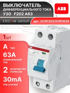 Выключатель диф тока УЗО 2P (2П) 63А 30 мА А F202 1шт