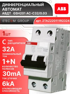 Дифавтомат 2P (1П+N) 32А 6кА 30мА C AC GSH201 1шт