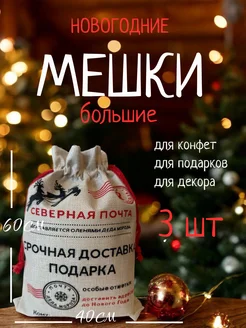 Новогодний мешок для подарков от Деда Мороза 40х60 (3шт)