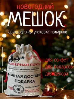 Новогодний мешок для подарков от Деда Мороза 25х34