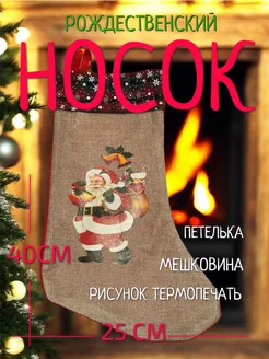 Рождественский носок для подарков 40х25 см