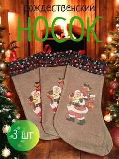 Рождественские носки для подарков 40х25 см (3 штуки)