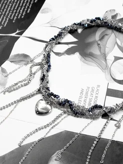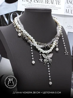 Многослойной чокер из Жемчуга с подвеской бабочка