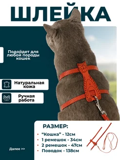 Шлейка для кошек с поводком для прогулки регулируемая