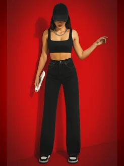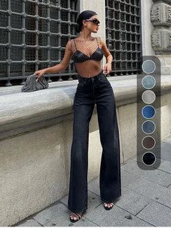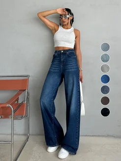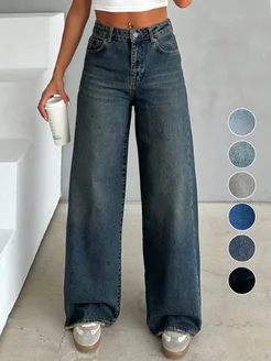 Джинсы женские широкие с высокой посадкой багги палаццо