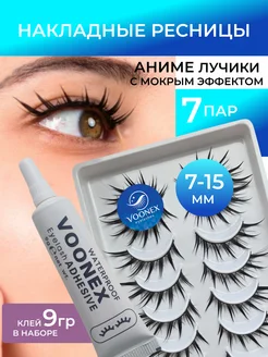Накладные ресницы с клеем аниме лучики с мокрым эффектом