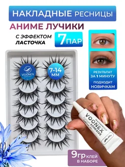 Накладные ресницы с клеем аниме лучики 7 пар