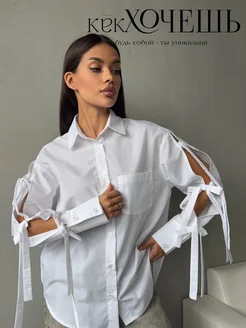 Рубашка белая oversize офисная хлопковая с бантиками блузка