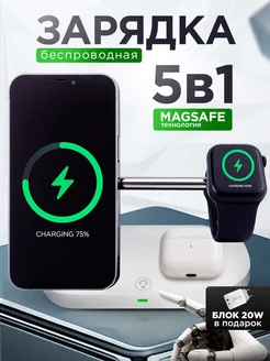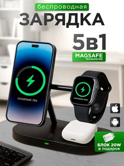 Беспроводная зарядка для iPhone и Android, Док станция 5 в 1