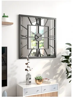Настенные зеркальные часы из кованного железа, квадратные