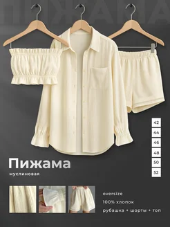 Пижама женская с шортами и рубашкой, костюм домашний