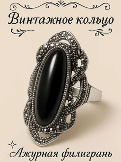 Кольцо с чёрным камнем “Королева ночи”