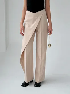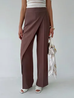 Асимметричные брюки палаццо с запахом и высокой посадкой