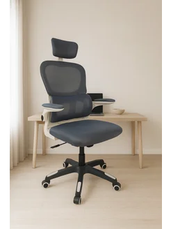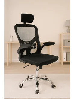 Кресло компьютерное на колесах с подлокотниками сетчатое