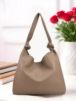 Вместительная сумка шоппер кожаная через плечо с косметичкой