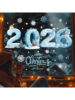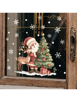 Новогодние наклейки на окна и украшение интерьера 2026
