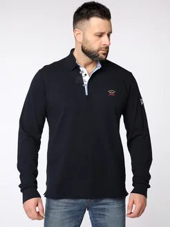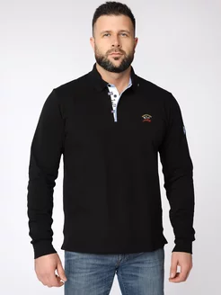 Хлопковый лонгслив с воротником поло и длинным рукавом