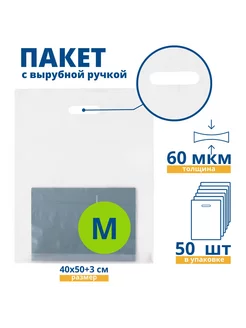 Пакет с вырубной ручкой 40*50см 50 шт прозрачный