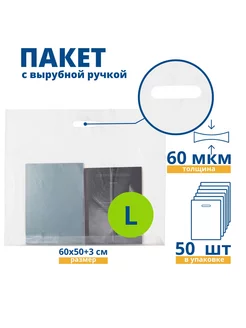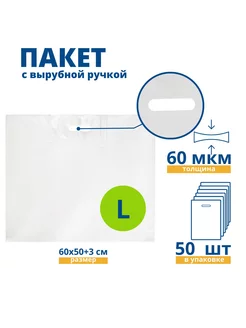 Пакет с вырубной укрепленной ручкой 60*50 см, 50 шт белый
