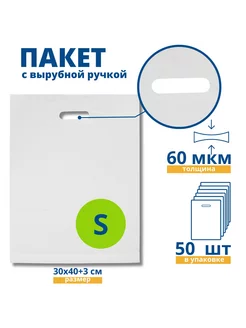 Пакет с вырубной укрепленной ручкой 30*40см 50 шт белый