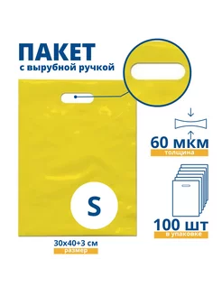 Пакет с вырубной ручкой, желтый 30*40+3 см, 100 шт, 60 мкм