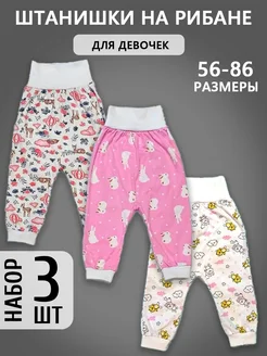 Штанишки-брюки на рибане для девочки 3 штуки, хлопок