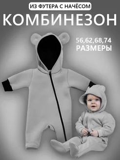 Комбинезон с капюшоном для новорожденных с начесом