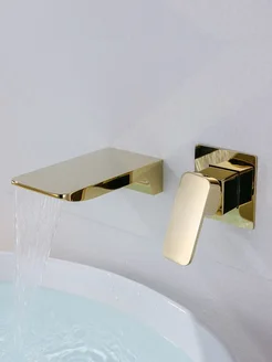 Смеситель встраиваемый для раковины и ванны водопад золото