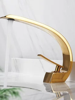 Смеситель для раковины в ванную золотистый глянцевый