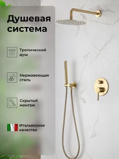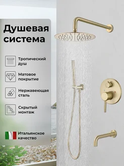 Душевая система скрытого монтажа встраиваемая золотистая