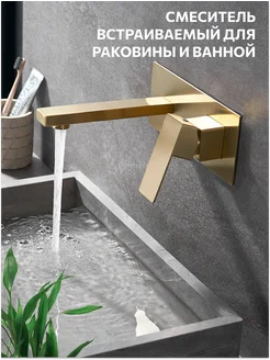Смеситель встраиваемый для раковины и ванны золотистый