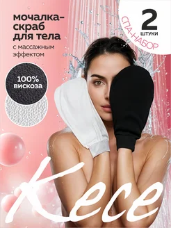 Мочалка для душа варежка кесе для пилинга 2шт белая и черная