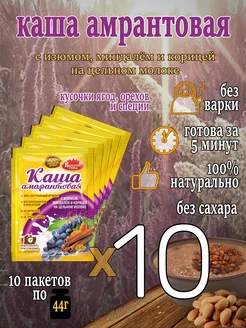 Каша амарантовая с изюмом, миндалём и корицей б п, 10 шт
