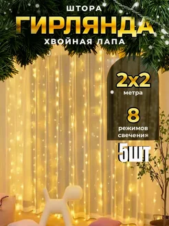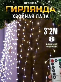 Гирлянда штора хвойная лапа 3x2 мишура с пультом