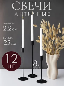 Свечи новогодние интерьерные белые 25 см, 12 шт