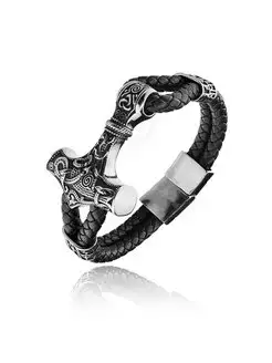 Браслет кожаный с молотом тора QB387