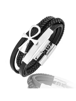 Браслет кожаный под гравировку с Анкхом QB903