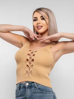 Топ жилет вязаный с завязками для миниатюрных девушек