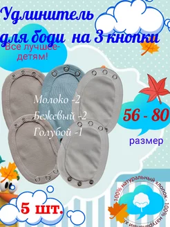 Удлинители в боди детское на 3 кнопки, 5 штуки