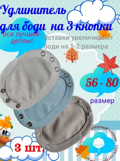 Удлинители в боди детское на 3 кнопки, 3 штуки