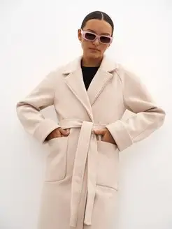 Пальто женское демисезонное оверсайз бежевое осеннее
