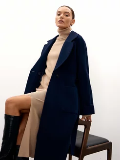 Пальто женское демисезонное оверсайз синее осеннее