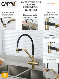 Смеситель для кухни с гибким изливом и фильтром G4398-89