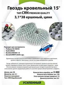 Кровельные гвозди для нейлера 38 мм, оцинкованы