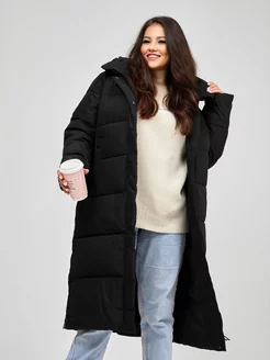 Пуховик зимний длинный с капюшоном оверсайз куртка