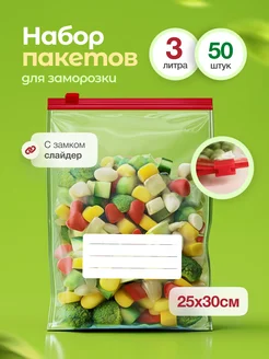 Зип-пакеты пищевые для заморозки с застежкой-слайдер 3л 50шт