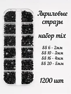 Стразы акриловые набор MIX черный SS6-SS20 стар