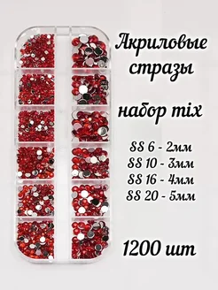 Стразы акриловые Dark Siam набор MIX красный SS6-SS20